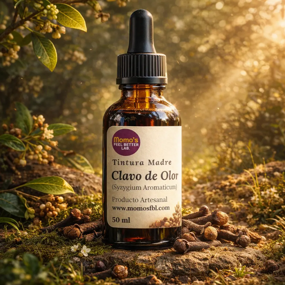 Históricamente, el clavo ha sido el aliado número uno para el alivio del dolor de muelas y las molestias digestivas a través de infusiones. Sin embargo, su uso medicinal va mucho más allá. En Momo’s Feel Better Lab, hemos capturado toda esa fuerza en esta tintura madre, diseñada para quienes buscan un apoyo robusto como antiinflamatorio y un escudo natural contra microbios y parásitos que pueden comprometer nuestra salud desde el interior.